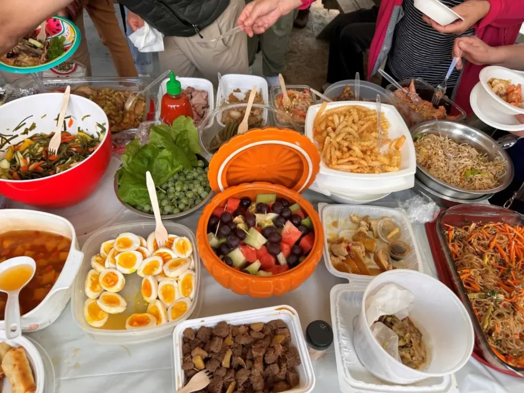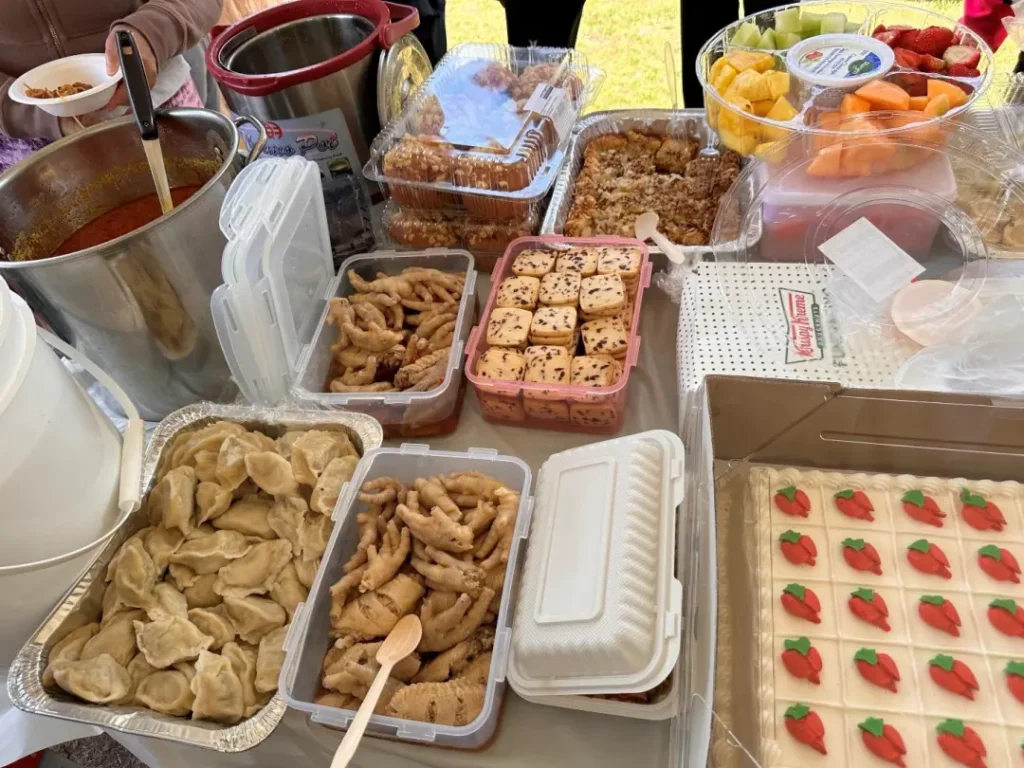 抽奖活动至此暂告一段落,本次夏日烧烤聚餐正式开始了,琳琅满目的各式风格菜品,有中西合璧,也有赣系风味!大家在大快朵颐的同时,也满足了思乡的味蕾。有各式凉拌菜,江西特色米粉,中西式甜点,酱猪蹄,脆鲜萝卜,香辣牛肉,花式卤蛋,笋干烧肉,手工水饺,也有组委会提供的烤羊肉串,烤鸡翅,烤玉米,还有各式新鲜水果拼盘,大家吃好喝好, 边吃边聊,拉家长里短,叙乡音乡情。