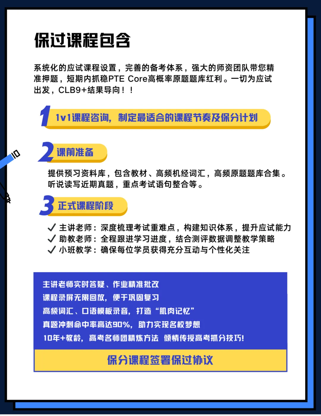正是在这样的需求背景下,我们也根据很多申请人备考语言的实际需求,专门推出了 CLB7–CLB9 PTE Core英语保分课程